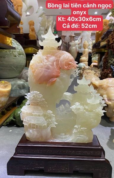 Vật phẩm Bồng Lai Tiên Cảnh chế tác từ Ngọc Onyx (đặc biệt là các dòng Onyx trắng thấu quang) là một kiệt tác phong thủy mang năng lượng của sự thăng hoa, giải thoát và thịnh vượng vĩnh cửu.