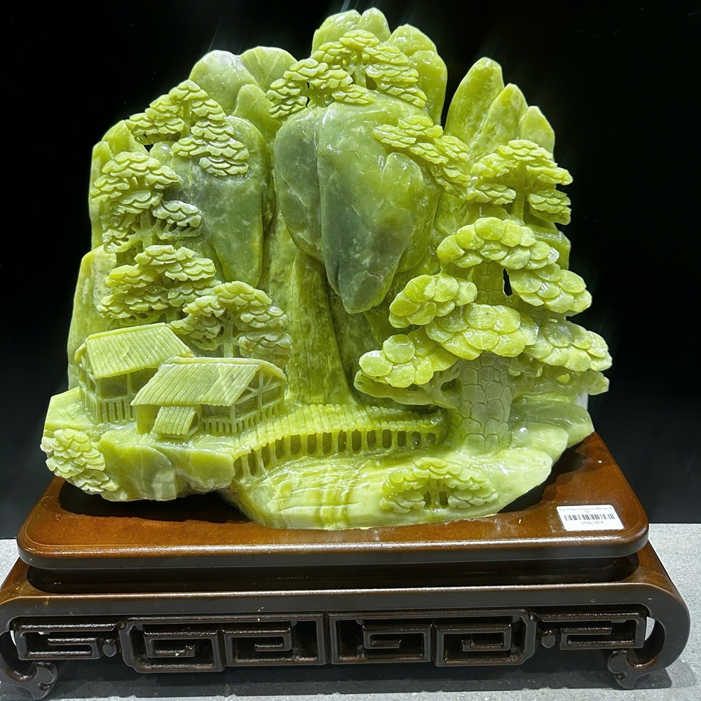 Bồng Lai Tiên Cảnh Ngọc Serpentine là biểu tượng trưng bày sự trường tồn, bình an, thịnh vượng và may mắn. Với chất ngọc xanh tự nhiên, sản phẩm giúp cân bằng năng lượng, xua muỗi tà khí, thu hút tài lộc, đặc biệt phù hợp người mệnh Mộc và Hỏa để chiêu tài, tăng cường sức khỏe.