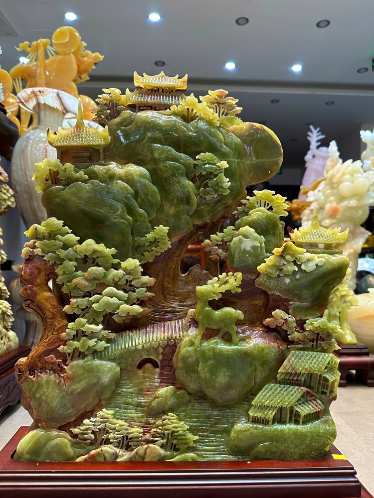 Phong Cảnh Hữu Tình trên nền Ngọc Onyx tự nhiên không đơn thuần là một tác phẩm nghệ thuật, mà là sự hội tụ thiêng liêng giữa tinh hoa của đất trời và đôi bàn tay tài hoa của con người. Mỗi vân đá Onyx uốn lượn như hơi thở của núi sông, kể lại câu chuyện về một cuộc sống thịnh vượng, nơi mà 'Sơn' mang lại sự vững chãi, còn 'Thủy' khơi nguồn cho dòng chảy tài lộc bất tận."
