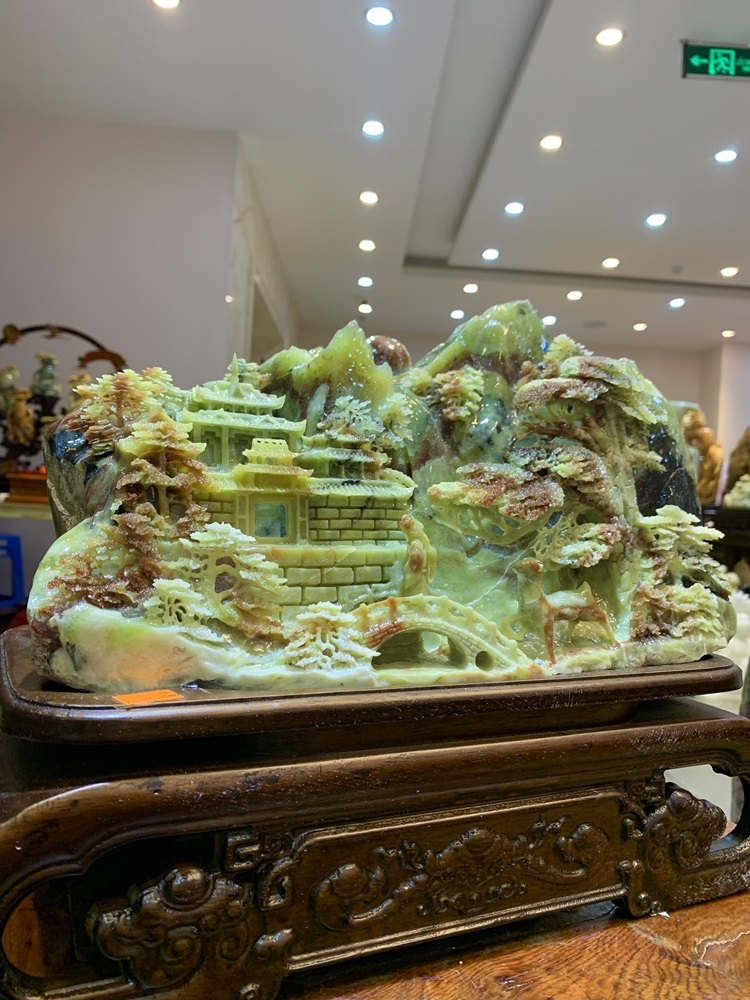 Tác phẩm Bồng Lai Tiên Cảnh chế tác từ Ngọc Tụ Nham (Serpentine) không chỉ là một kiệt tác nghệ thuật điêu khắc mà còn là vật phẩm phong thủy mang năng lượng cực kỳ an lành. Nó giống như một "trạm phát wifi" cho những luồng khí tích cực trong ngôi nhà của bạn.