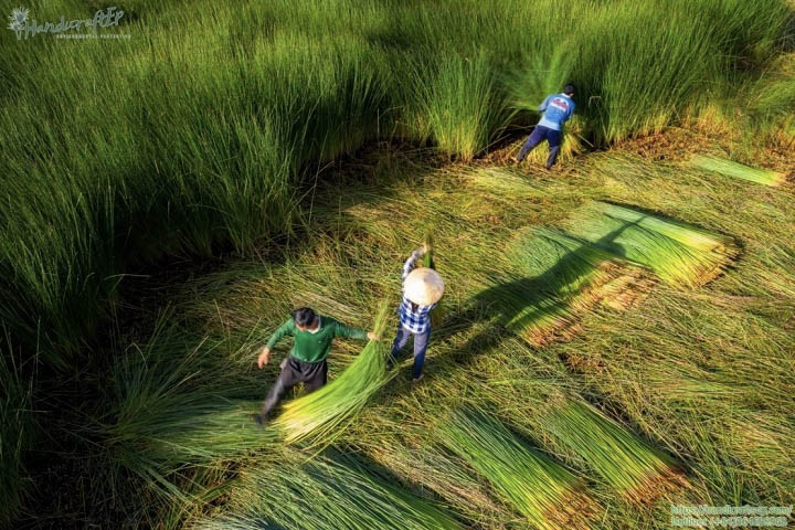 Cánh đồng cỏ bàng vời các sợi cỏ biển cao vút được người dân thu hoạch