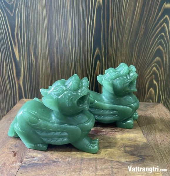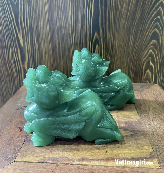 Cặp Linh Vật Tỳ Hưu Đá Thạch Anh Xanh Biểu tượng của sự chiêu tài, hút lộc và bình an