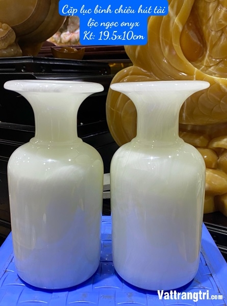 Hãy sở hữu Cặp Lục Bình Chiêu Hút Tài Lộc Ngọc Onyx Trắng 19.5cm x 10cm tuyệt đẹp này để tôn lên vẻ đẹp tinh khôi cho không gian sống và thu hút những điều tốt lành đến với cuộc sống của bạn!
