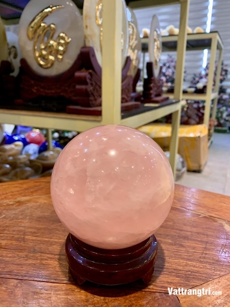 Quả Cầu Đá Thạch Anh Hồng 9cm - Hồng Ngọc Tình Ái, Năng Lượng Yêu Thương Vô Tận