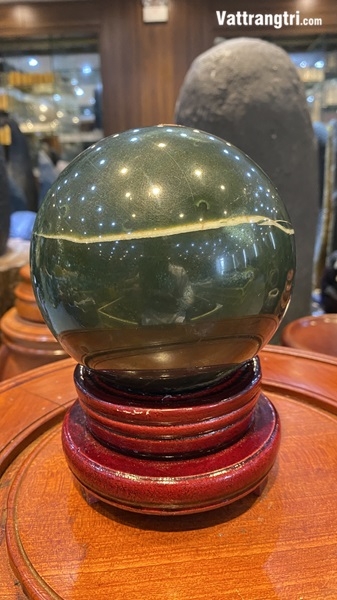 Vẻ đẹp lục bảo từ lòng đất sâu thẳm: Quả cầu ngọc mã não rêu 12cm không chỉ là một vật phẩm trang trí, mà là một chứng tích của tự nhiên, mang vẻ đẹp lục bảo rực rỡ và năng lượng an nhiên vô tận. Sắc xanh rêu độc đáo, những lớp vân đá mềm mại như rêu phong, tượng trưng cho sự bình an, cân bằng và năng lượng tích cực.