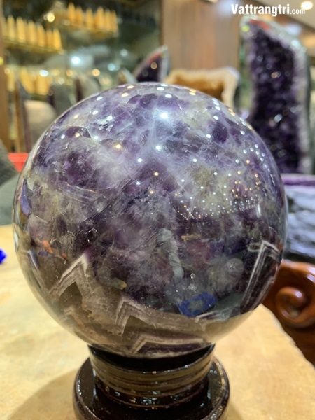 Hãy sở hữu Quả Cầu Thạch Anh Tím Hoa Chanh đường kính 14cm tuyệt đẹp này để tôn lên vẻ đẹp huyền bí cho không gian sống và thu hút những điều tốt lành đến với cuộc sống của bạn!