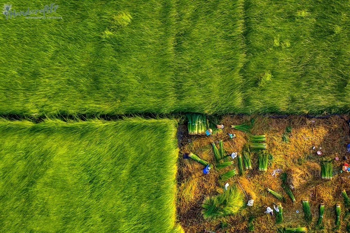 Cánh đồng cói ở Thái Bình đang mùa thu hoạch
