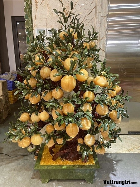 Vẻ đẹp hoàng kim từ lòng đất sâu thẳm: Cây đào ngọc hoàng long 138 quả không chỉ là một vật phẩm trang trí, mà là một tuyệt tác của tự nhiên, mang vẻ đẹp hoàng kim rực rỡ và năng lượng thịnh vượng vô biên. Sắc vàng óng ánh như ánh mặt trời, 138 quả đào được chế tác tinh xảo từ đá ngọc hoàng long tự nhiên, những lớp vân đá độc đáo như dòng chảy vàng ròng, tượng trưng cho sự giàu sang, phú quý và thành công tột bậc.