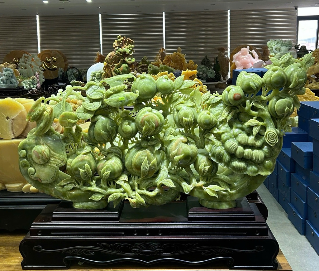 Được ví như báu vật hội tụ cả danh vọng lẫn bình an, Gậy Như Ý Đào Tiên Ngọc Onyx Xanh là biểu tượng của một cuộc đời viên mãn. Với sắc xanh dịu vợi của ngọc quý, tác phẩm không chỉ giúp gia chủ khẳng định vị thế 'vạn sự như ý' mà còn là lời cầu chúc cho sức khỏe dẻo dai, phúc thọ an khang trường tồn cùng thời gian.