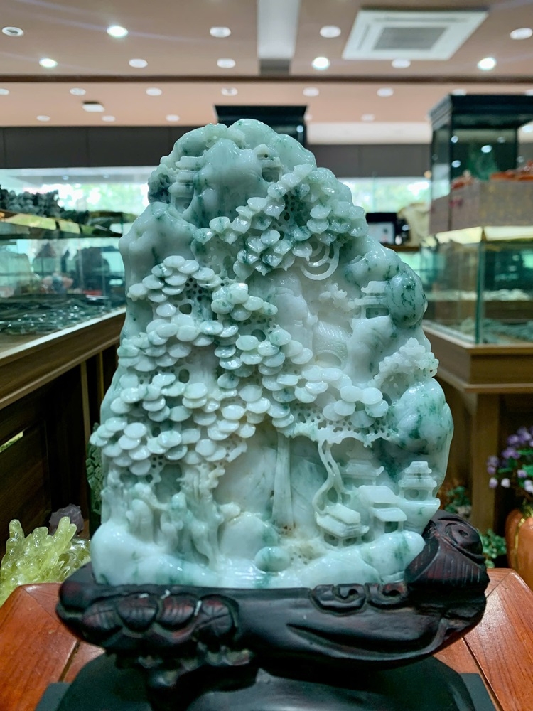 Bồng lai tiên cảnh chế tác từ ngọc phỉ thúy mang ý nghĩa biểu tượng sâu sắc về sự trường thọ, may mắn, và thịnh vượng, đồng thời tạo ra năng lượng hài hòa âm dương. Hình ảnh chốn bồng lai gợi sự an yên, trí tuệ và bình an, phù hợp để chiêu tài lộc và xua đuổi tà khí trong phong thủy.