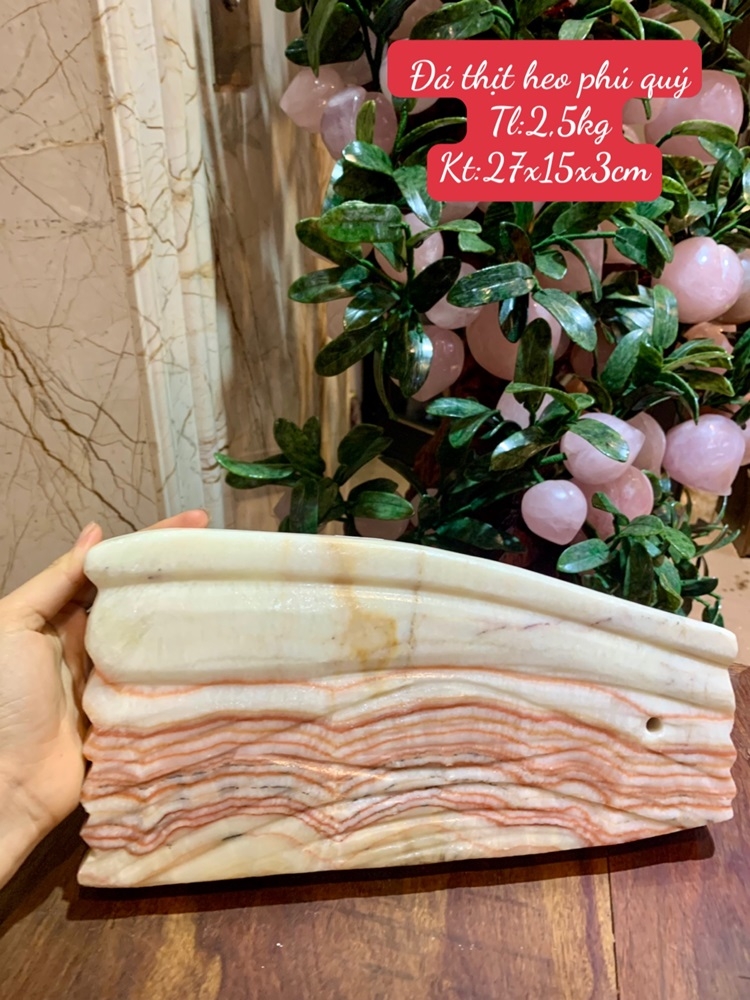 Đá thịt heo là loại đá tự nhiên có hình kiểu dáng giống miếng thịt ba chỉ, mang ý nghĩa phong thủy sâu sắc về sự không đủ, giàu sang, và cuộc sống thịnh vượng. Sở hữu loại đá này được cholà giúp gia chủ tài lộc, mang lại may mắn, bình an, và biểu tượng cho việc luôn có "của ăn của để" trong nhà.
