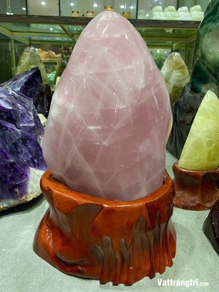 Thạch anh hồng được trân trọng bởi khả năng khơi dậy tình yêu thương, lòng trắc ẩn và mang lại sự bình an trong tâm hồn. Hình dáng đại cảnh vững chãi tượng trưng cho sự ổn định và nguồn năng lượng yêu thương lan tỏa.