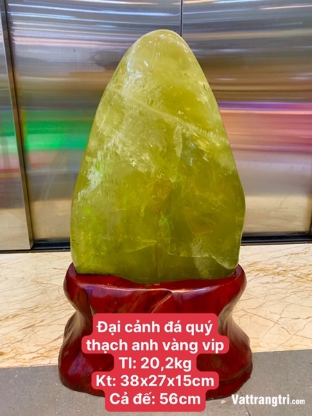 Đại cảnh đá quý thạch anh vàng VIP không chỉ là một vật phẩm trang trí, mà là một bảo vật của tự nhiên, mang vẻ đẹp hoàng kim lộng lẫy, thuần khiết và năng lượng phú quý dồi dào. Được kiến tạo qua hàng triệu năm dưới áp lực và biến đổi địa chất, những tinh thể thạch anh vàng quý giá nhất đã kết tinh thành một khối đại cảnh uy nghi, bề mặt óng ánh sắc vàng rực rỡ như ánh dương ban mai. Màu vàng tươi tắn, không tì vết, lan tỏa một nguồn năng lượng ấm áp, tượng trưng cho sự thịnh vượng, thành công và khả năng thu hút tài lộc vô biên.