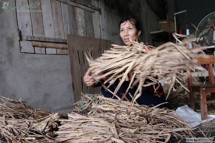 Để dệt thành những sản phẩm mỹ nghệ đẹp, các nguyên liệu đều được phơi khô.