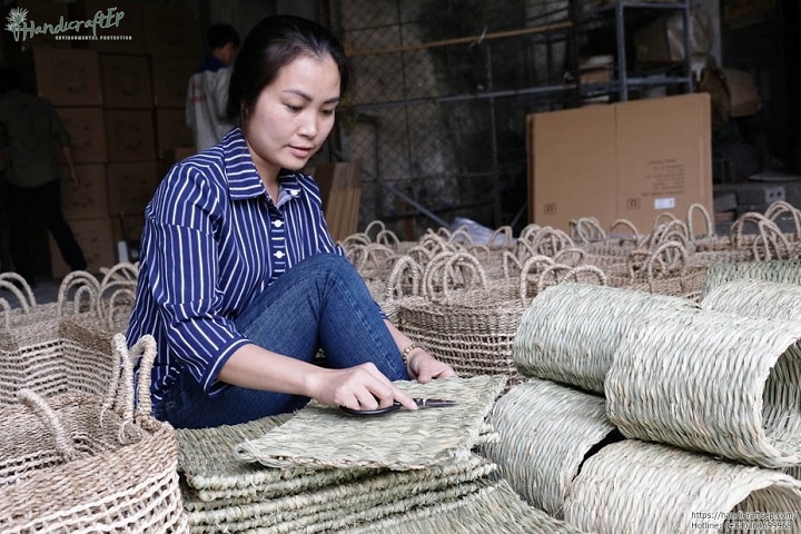Chị Mai Thị Yến cho biết: Các sản phẩm chế biến từ nguyên liệu tự nhiên như bèo tây, cói, cỏ, rơm được thị trường Nhật Bản, Mỹ, Đức, Đan Mạch… ưa chuộng do bền, đẹp và đặc biệt là thân thiện với môi trường.