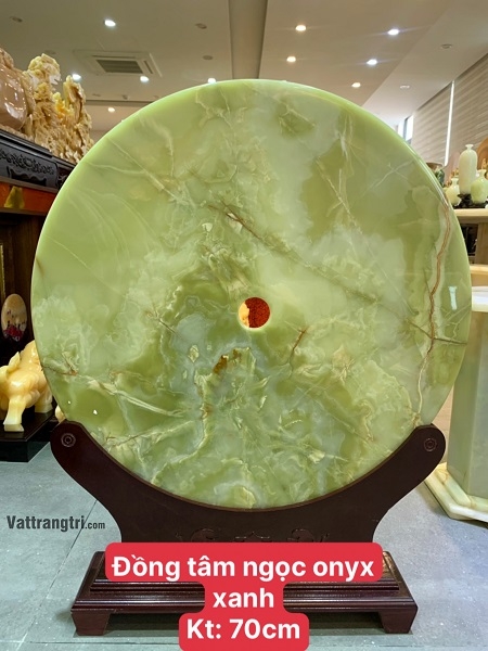 Kích thước uy nghi, năng lượng thịnh vượng lan tỏa: Với đường kính 70cm, đồng điếu tâm ngọc onyx xanh là điểm nhấn quyền lực cho không gian, mang năng lượng thịnh vượng lan tỏa khắp không gian.