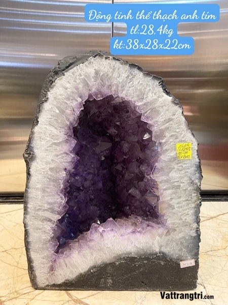 Kích thước vững chãi, năng lượng an lành lan tỏa: Với kích thước 38 x 28 x 22cm, động tinh thể thạch anh tím mang đến một cảm giác vững chãi và bề thế, là điểm nhấn độc đáo và đầy sức hút cho không gian, mang năng lượng an lành lan tỏa khắp không gian. Kích thước này tạo nên một sự hiện diện mạnh mẽ, thu hút mọi ánh nhìn vào vẻ đẹp kỳ diệu bên trong.