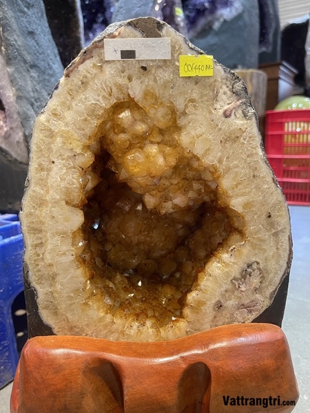 Vẻ đẹp hoàng kim từ lòng đất sâu thẳm: Hang động tinh thể thạch anh vàng không chỉ là một vật phẩm trang trí, mà là một bảo vật của tự nhiên, mang vẻ đẹp hoàng kim rực rỡ và năng lượng thịnh vượng vô biên. Bên trong lớp vỏ đá xù xì, ẩn chứa một không gian kỳ diệu với vô số tinh thể thạch anh vàng lấp lánh như những tia nắng mặt trời hội tụ, tượng trưng cho sự giàu sang, phú quý và nguồn năng lượng tích cực dồi dào.