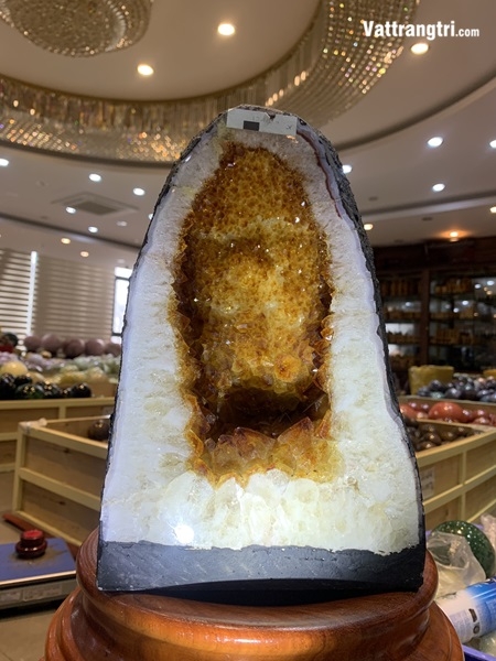 Thạch anh vàng VIP được đánh giá cao bởi khả năng thu hút tài lộc, tăng cường sự tự tin và mang lại năng lượng tích cực mạnh mẽ. Hình dáng hang động vững chãi tượng trưng cho sự bảo vệ tài sản và sự ổn định trong kinh doanh.