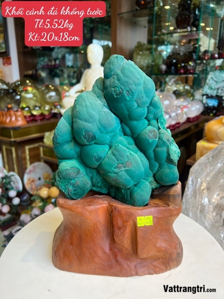 Kích thước ấn tượng, vượng khí an lành lan tỏa: Với kích thước 20 x 18cm, khối cảnh đá khổng tước tự nhiên là điểm nhấn mạnh mẽ và đầy uy lực cho không gian, mang vượng khí an lành lan tỏa một cách rộng khắp và bền bỉ. Kích thước này tạo nên một sự hiện diện vững chãi, thu hút mọi ánh nhìn vào vẻ đẹp tráng lệ và cấu trúc độc đáo của nó.