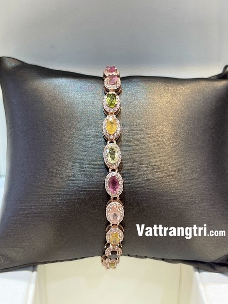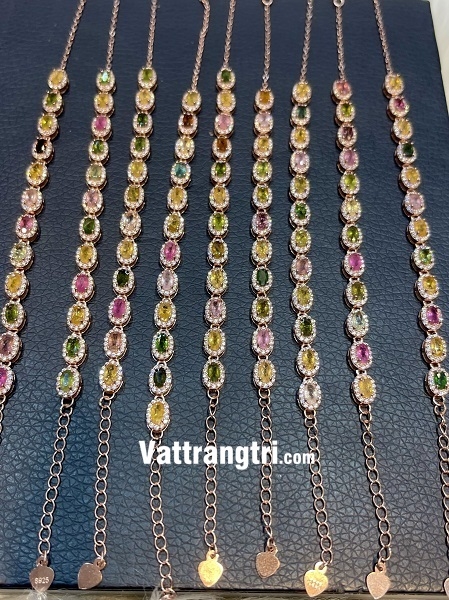 Lắc tay đính đá tourmalin đa sắc bạc 925