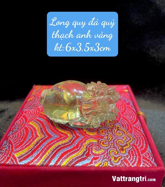 Hình tượng long quy, với ý nghĩa phong thủy sâu sắc, từ lâu đã được coi là biểu tượng của sức mạnh, quyền lực, sự trường thọ, tài lộc và may mắn. Thạch anh vàng, với khả năng mang lại tài lộc và thịnh vượng, giúp gia chủ luôn gặp những điều tốt lành. Sự kết hợp giữa hình tượng long quy và thạch anh vàng tạo nên một tác phẩm phong thủy giá trị, mang đến những điều tốt lành cho gia chủ.