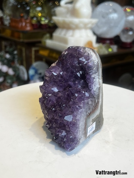 Thạch anh tím, kết tinh sâu trong lòng đất, mang trong mình năng lượng thanh cao và vẻ đẹp thuần khiết. Cấu trúc tinh thể tự nhiên tạo nên vẻ đẹp độc đáo và tinh tế cho tác phẩm nhỏ nhắn này.