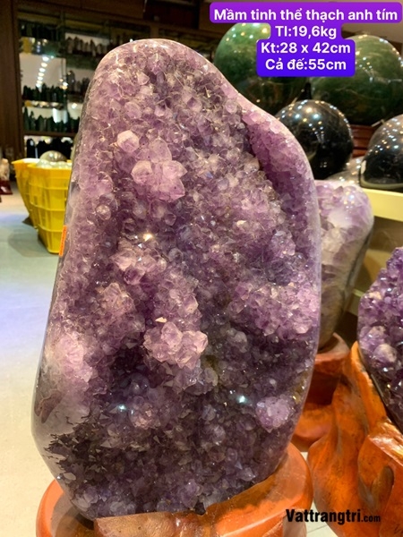 Kích thước độc đáo, năng lượng an lành lan tỏa: Với kích thước 45 x 18cm, động đá thạch anh tím mang một dáng vẻ thanh lịch và độc đáo, là điểm nhấn tinh tế cho không gian, mang năng lượng an lành lan tỏa một cách mạnh mẽ nhưng vẫn dịu dàng. Hình dáng dài và hẹp gợi lên một sự khám phá bất tận vào vẻ đẹp bên trong.