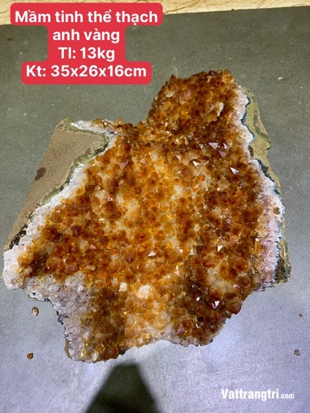 Mầm tinh thể thạch anh vàng nguyên sinh là một tác phẩm độc đáo của tự nhiên, sở hữu hình dáng mầm tự nhiên, nguyên bản với kích thước ấn tượng 35 x 26 x 16cm. Các tinh thể thạch anh vàng tụ hội một cách tự nhiên, giữ trọn vẹn vẻ đẹp hoang sơ và năng lượng thuần khiết từ lòng đất.