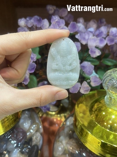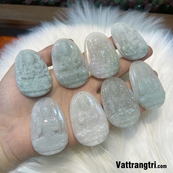 - Ngọc cẩm thạch trắng và Phật bản mệnh: Sự kết hợp giữa màu trắng tinh khiết của cẩm thạch và hình tượng Phật bản mệnh tạo nên một biểu tượng phong thủy mạnh mẽ, mang đến sự bình an, may mắn và bảo vệ cho người sở hữu.