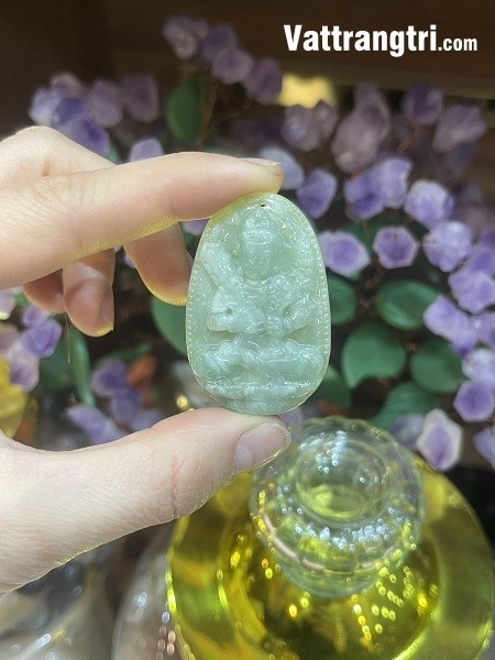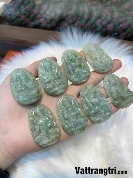 - Ngọc cẩm thạch xanh và Phật bản mệnh: Sự kết hợp giữa màu xanh tươi mát của cẩm thạch và hình tượng Phật bản mệnh tạo nên một biểu tượng phong thủy mạnh mẽ, mang đến sự bình an, sức khỏe và may mắn cho người sở hữu.