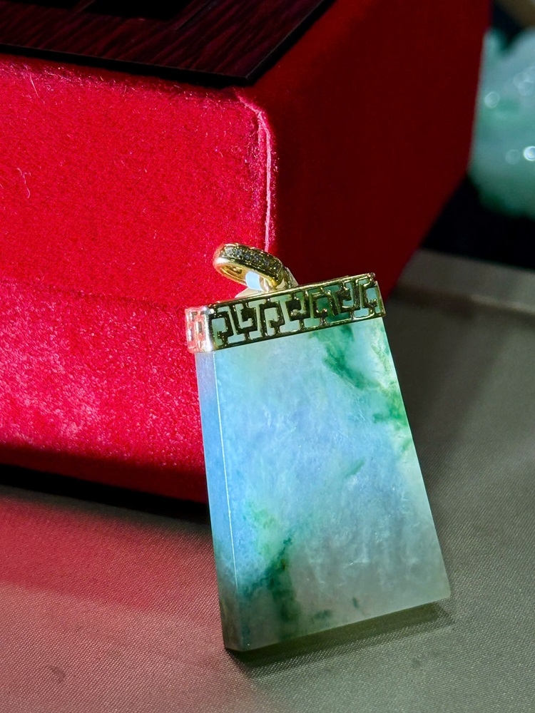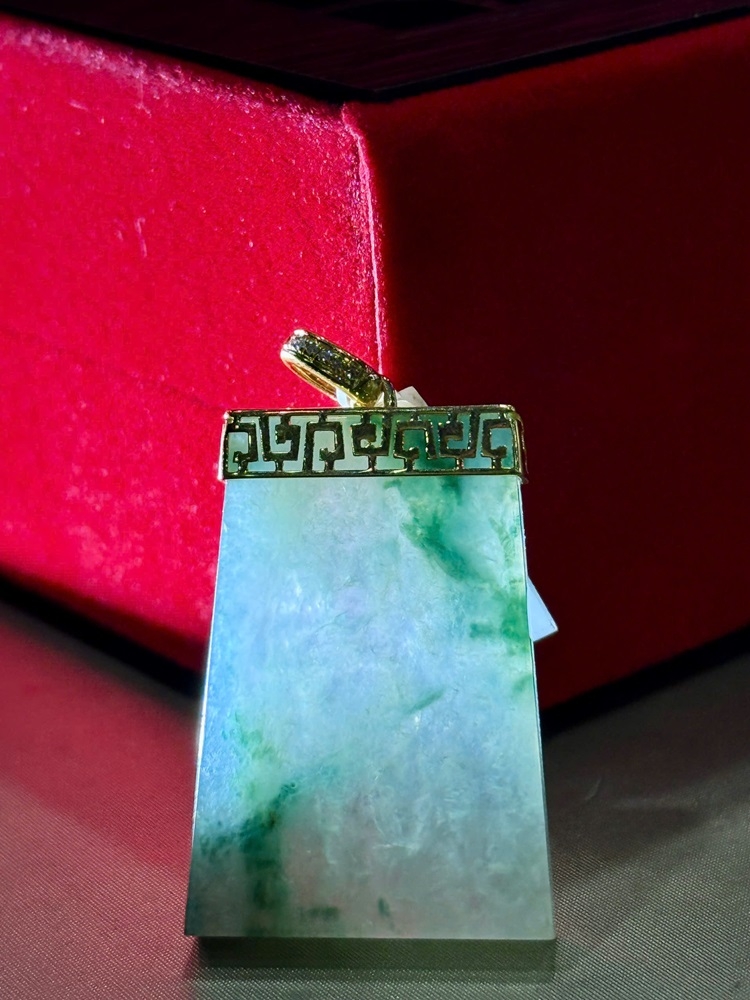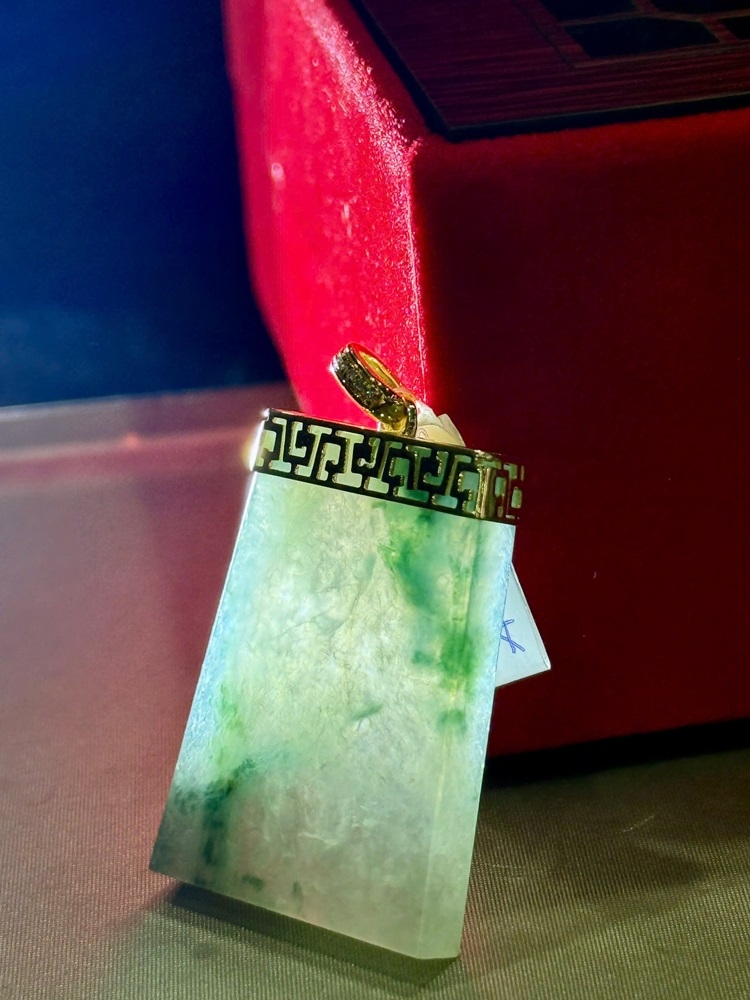 Loại sản phẩm: Mặt Vô Sự Bài Ngọc Phỉ Thuý Vàng 18k - Đính 12V Kim Cương