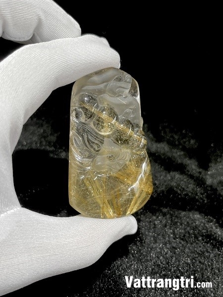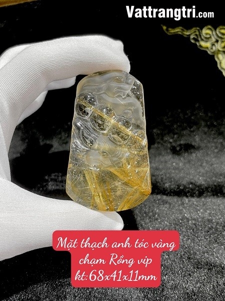 - Hình ảnh: Rồng là linh vật biểu tượng cho quyền lực, sự thịnh vượng và may mắn trong văn hóa Á Đông. Hình ảnh con rồng uy nghiêm khi kết hợp với thạch anh tóc vàng càng tăng thêm vẻ đẹp quyền quý và sức mạnh.