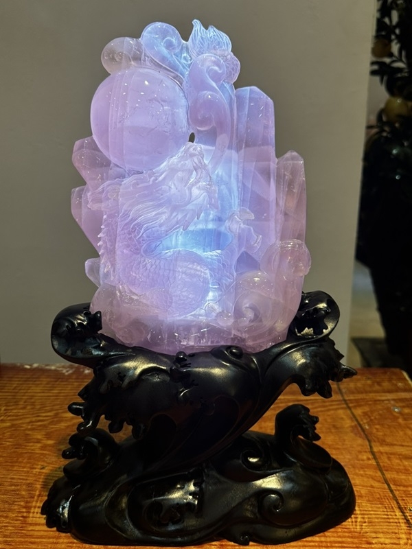 Trong văn hóa Á Đông, Rồng là biểu tượng của Quyền Lực và Sự Thăng Tiến. Khi kết hợp với Thạch Anh Hồng, tác phẩm này được tin rằng sẽ giúp củng cố các mối quan hệ, hóa giải thị phi, và chiêu tài lộc, đặc biệt là mang đến sự may mắn, viên mãn trong cuộc sống lứa đôi. Tác phẩm xứng đáng là điểm nhấn sang trọng, lan tỏa năng lượng ấm áp cho không gian sống hoặc làm quà tặng cao cấp.