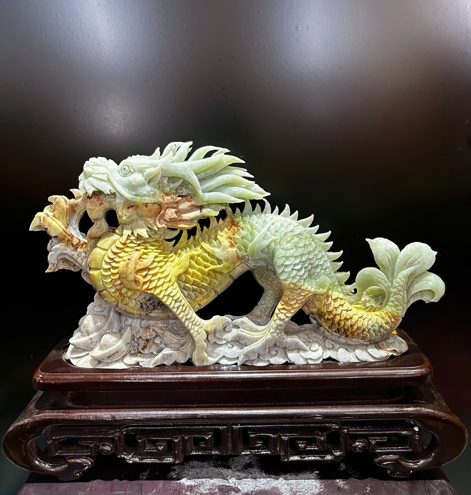 Nhất Long Uy Quyền Hộ Chủ Ngọc Serpentine là vật phẩm phong thủy cao cấp, kết hợp hình tượng rồng (biểu tượng quyền lực, trí tuệ) và đá Serpentine (năng lượng dương cao)Nó mang ý nghĩamang lại may mắn, tài lộc, nâng cao địa vị, tăng cường sự tự tin, trí tuệ, và bảo vệ gia chủ khỏi năng lượng tiêu cực, đặc biệt hợp với người mệnh Mộc, Hỏa.
