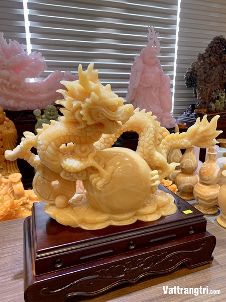 Hình tượng rồng vờn ngọc, với ý nghĩa phong thủy sâu sắc, từ lâu đã được coi là biểu tượng của quyền lực, địa vị, thịnh vượng, tài lộc và may mắn. Ngọc hoàng long, với khả năng mang lại tài lộc và thịnh vượng, giúp gia chủ luôn gặp những điều tốt lành. Sự kết hợp giữa hình tượng rồng và ngọc hoàng long tạo nên một tác phẩm phong thủy giá trị, mang đến những điều tốt lành cho gia chủ.