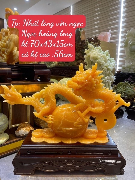 Nhất Long Vờn Ngọc Ngọc Hoàng Long 70cm là một kiệt tác nghệ thuật, kết hợp hoàn hảo giữa vẻ đẹp tự nhiên của đá quý và ý nghĩa phong thủy sâu sắc. Với kích thước ấn tượng và hình tượng rồng oai phong, sản phẩm này không chỉ là một vật trang trí mà còn là một biểu tượng của quyền lực, sự thịnh vượng và may mắn.