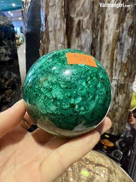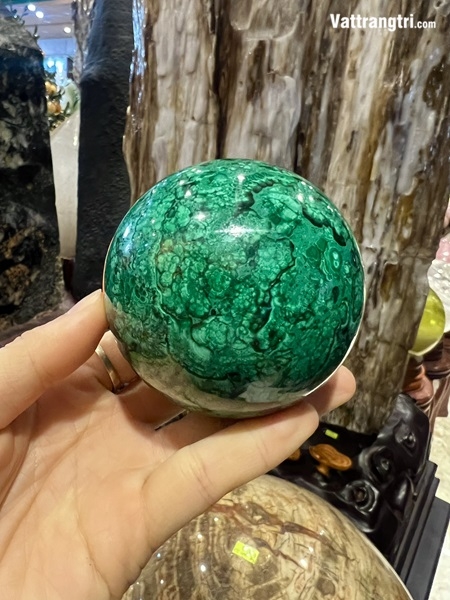 Quả Cầu Đá Khổng Tước (Đá Lông Công) là một tác phẩm nghệ thuật độc đáo, kết hợp giữa vẻ đẹp tự nhiên của đá khổng tước (đá lông công) và hình tượng quả cầu phong thủy. Đá khổng tước (đá lông công), với màu xanh lục bảo đặc trưng và những đường vân sọc độc đáo, tượng trưng cho sự thịnh vượng, sự bảo vệ và sự quý phái. Hình tượng quả cầu, với hình dáng tròn trịa, tượng trưng cho sự viên mãn, trọn vẹn và năng lượng luân chuyển không ngừng.