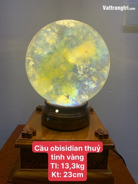 Sở hữu ngay quả cầu đá Obsidian vàng 23cm, để không gian sống thêm phần sang trọng, đẳng cấp, đồng thời đón nhận những nguồn năng lượng tích cực, may mắn!