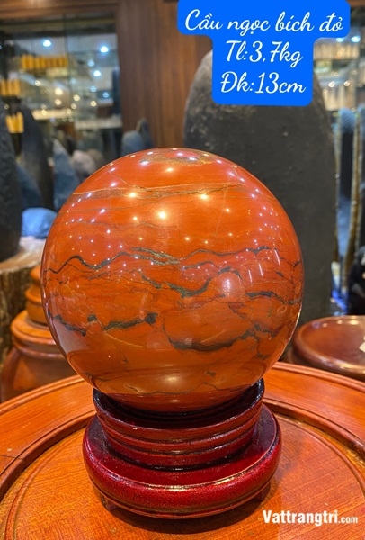 Quả Cầu Ngọc Bích Đỏ 13cm - Hỏa Ngọc Tinh Túy, Năng Lượng Chinh Phục Vô Song