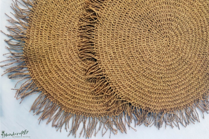 Mẫu thảm cói tròn được làm thủ công một cách tỉ mỉ của những người thợ lành nghề tại Việt Nam