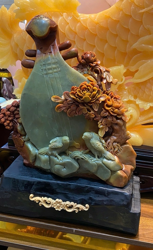 Tác phẩm Đàn Tì Bà Ngọc Thọ Sơn là một vật phẩm phong thủy đầy chất nghệ thuật, mang ý nghĩa sâu sắc về Sự an nhiên, Trí tuệ và Gia đạo hòa thuận.