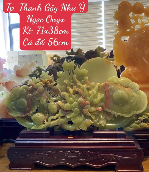 Thanh Gậy Như Ý chế tác từ Ngọc Onyx là biểu tượng tuyệt mỹ của quyền lực và sự viên mãn. Với những đường cong uốn lượn mềm mại nhưng đầy uy nghiêm, tác phẩm toát lên phong thái của bậc lãnh đạo, tượng trưng cho lời chúc "vạn sự hanh thông, cầu được ước thấy".