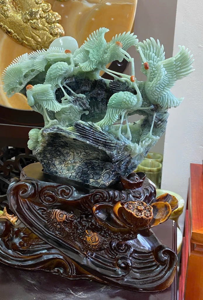 Loại sản phẩm: Tác Phẩm Tiên Hạc Sum Vầy Ngọc Serpentine
