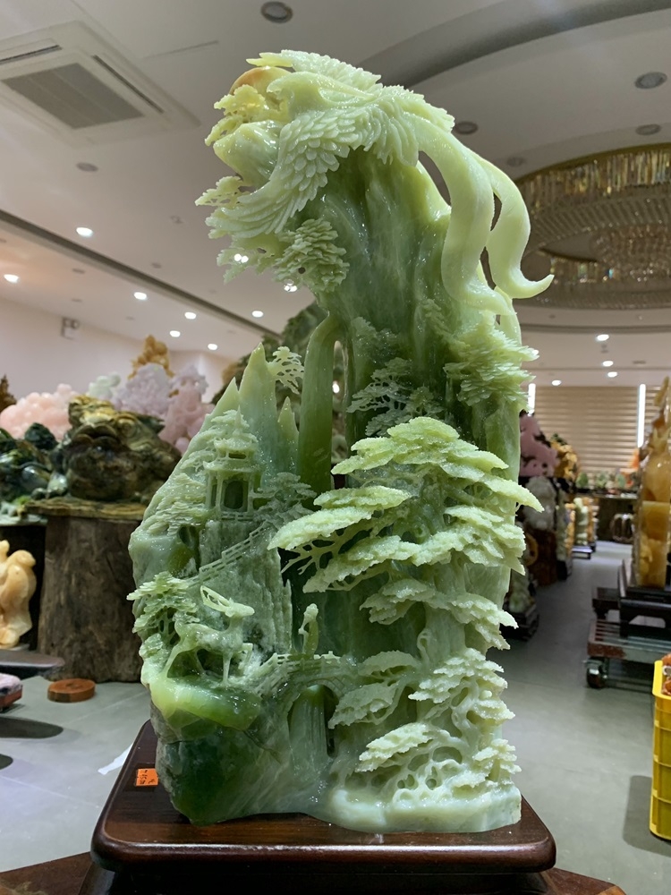 Loại sản phẩm: Tiên Cảnh Bồng Lai Khổng Tước Trên Mây Ngọc Serpentine
