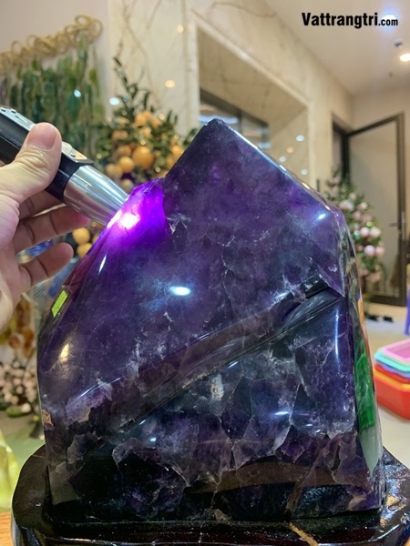 Chất liệu Thạch Anh Tím Siêu VIP - Bản giao hưởng của ánh sáng và năng lượng vũ trụ: Thạch anh tím, một biến thể quý giá của khoáng vật silica, được tạo nên từ sự kết tinh chậm rãi trong các hốc đá magma hoặc các mạch nước nóng giàu silica. Sắc tím đặc trưng của nó là do sự hiện diện của một lượng nhỏ sắt và các tạp chất tự nhiên khác trong quá trình hình thành. Ở cấp độ Siêu VIP, thạch anh tím thể hiện độ tinh khiết và độ trong suốt gần như tuyệt đối, cho phép ánh sáng xuyên qua và phản xạ một cách hoàn hảo, tạo nên hiệu ứng lấp lánh đa chiều vô cùng quyến rũ. Các tinh thể thường có cấu trúc lục giác đều đặn, với các mặt phẳng nhẵn bóng, phản ánh sự trật tự hoàn hảo của tự nhiên. Khi chạm vào bề mặt trụ đá, ta cảm nhận được sự mát lạnh, mịn màng và một nguồn năng lượng tĩnh lặng nhưng mạnh mẽ đang lan tỏa.