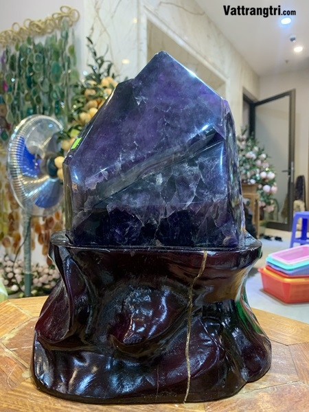 Vẻ đẹp tím ngọc đế vương từ lòng đất sâu thẳm: Trụ tinh thể thạch anh tím Siêu VIP không chỉ là một vật phẩm trang trí, mà là một cột năng lượng thiêng liêng, mang vẻ đẹp tím ngọc đậm đà, quý phái và năng lượng linh khí tinh túy. Từ sâu trong lòng đất, dưới áp lực và thời gian vô tận, những tinh thể thạch anh tím thuần khiết nhất đã kết tinh thành một cấu trúc trụ vững chãi, bề mặt lấp lánh ánh tím huyền ảo như bầu trời đêm đầy sao. Màu tím đậm, trong suốt như pha lê, lan tỏa một nguồn năng lượng thanh cao, tượng trưng cho quyền năng tinh thần, sự uyên bác và khả năng kết nối với những tầng rung động cao nhất của vũ trụ.
