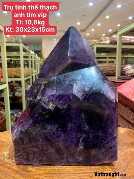 Với kích thước 30 x 23 x 15cm, trụ tinh thể thạch anh tím Siêu VIP sở hữu một dáng vẻ uy nghi, vừa đủ cao lớn để thu hút mọi ánh nhìn, vừa đủ thanh thoát để toát lên vẻ đẹp tao nhã. Cấu trúc trụ thẳng đứng tượng trưng cho sự vươn lên, sự phát triển không ngừng và khả năng khai thông các dòng chảy năng lượng trong không gian một cách mạnh mẽ và tinh tế. Đặt trụ đá ở vị trí trang trọng sẽ như thiết lập một kênh dẫn năng lượng vũ trụ, mang lại sự hài hòa, thịnh vượng và bình an cho gia chủ.