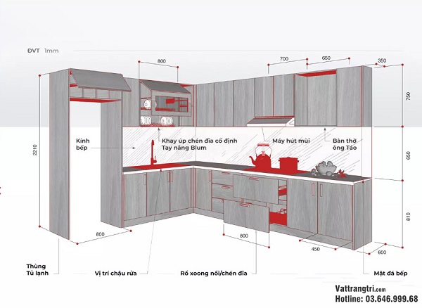 Để được thuận tiện trong quá trình nấu nướng và sử dụng tủ bếp hình chữ L, thì ta phải đo lường và lựa chọn kích thước phù hợp cho tủ bếp. Vật Trang Trí sẽ hướng dẫn bạn chọn kích thước tủ bếp phù hợp với các thành viên trong gia đình.