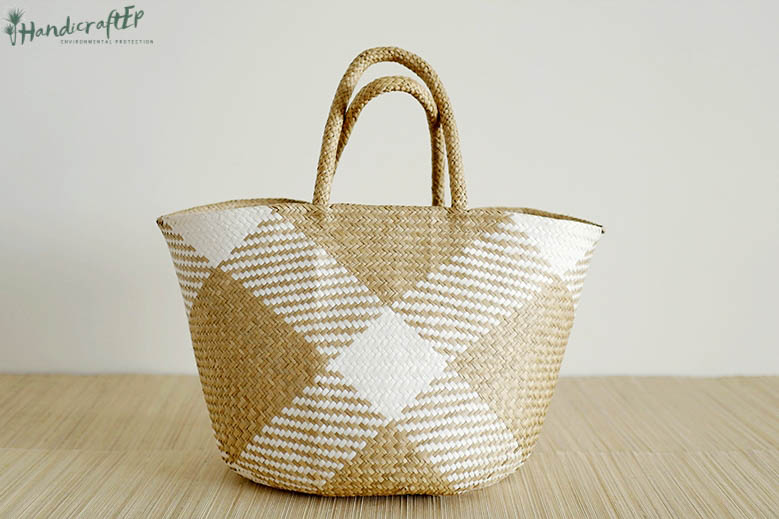 Mẫu túi cói đan X trắng thời trang đi chợ